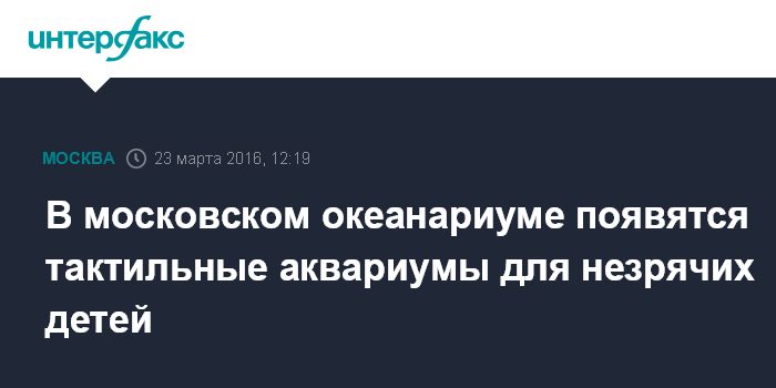Москва. 23 марта. INTERFAX.RU - В апреле в московском океанариуме ("Москвариуме") появятся тактильные аквариумы для незрячих и слабовидящих детей, сообщает ресурс mos.ru.