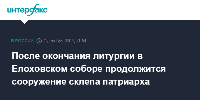 Как сообщает корреспондент "Интерфакса", по окончании службы в Елоховском соборе будет продолжено сооружение склепа для погребения гроба с новопреставленным патриархом Московского и всея Руси Алексием II.