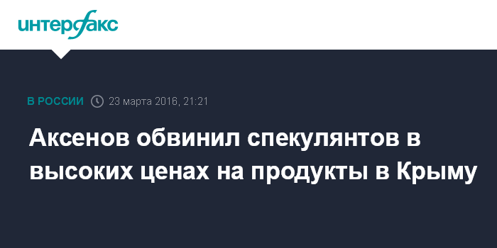 Москва. 23 марта. INTERFAX.RU - Глава Крыма Сергей Аксенов объяснил спекуляциями то, что цены на лекарства и продукты питания на полуострове оказались на 30-40% больше, чем в соседних российских регионах: Краснодарском крае и Ростовской области.