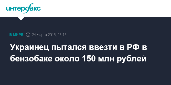 Москва. 24 марта. INTERFAX.RU - Пограничники Харьковского погранотряда обнаружили крупную сумму в российских рублях, которую гражданин Украины пытался вывезти в Россию, спрятав деньги в бензобаке "Волги".