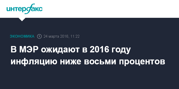 В МЭР ожидают в 2016 году инфляцию ниже восьми процентов