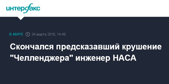 Скончался предсказавший крушение "Челленджера" инженер НАСА