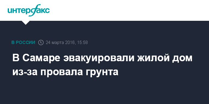 Москва. 24 марта. INTERFAX.RU - Провал грунта образовался в Самаре в четверг рядом с жилым домом, из-за чего его жильцов эвакуируют, сообщает пресс-служба регионального ГУ МЧС.