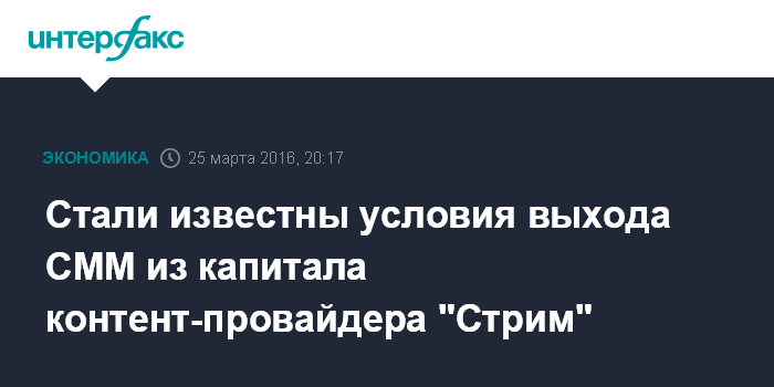 Стали известны условия выхода СММ из капитала контент-провайдера "Стрим"