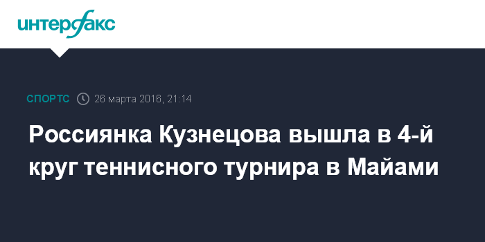 Россиянка Кузнецова вышла в 4-й круг теннисного турнира в Майами
