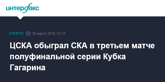 Москва. 26 марта. INTERFAX.RU - ЦСКА на выезде взял верх над петербургским СКА со счетом 0:1 (0:0 0:0 0:0 0:1) в третьем матче полуфинала Кубка Гагарина Континентальной хоккейной лиги (КХЛ).