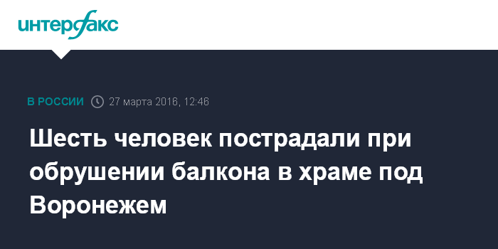 Москва. 27 марта. INTERFAX.RU - Обрушение пола балкона произошло в храме Николая Чудотворца села Алферовка Воронежской области в воскресенье, есть пострадавшие, сообщает пресс-служба СУ СКР по региону.