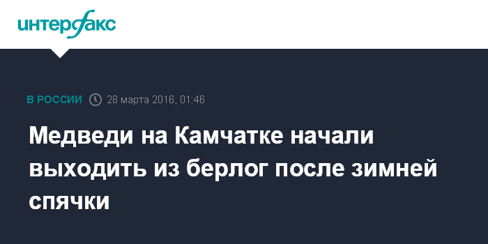 Москва. 28 марта. INTERFAX.RU - Бурые медведи начали просыпаться в Южно-Камчатском заказнике, сообщает пресс-служба ФГБУ "Кроноцкий государственный заповедник".