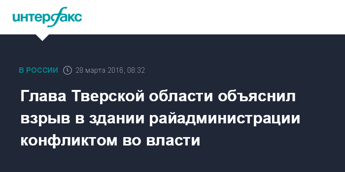 Глава Тверской области объяснил взрыв в здании райадминистрации конфликтом во власти