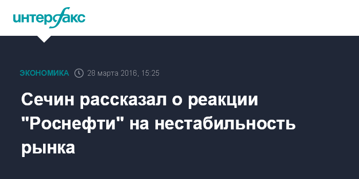 Сечин рассказал о реакции "Роснефти" на нестабильность рынка
