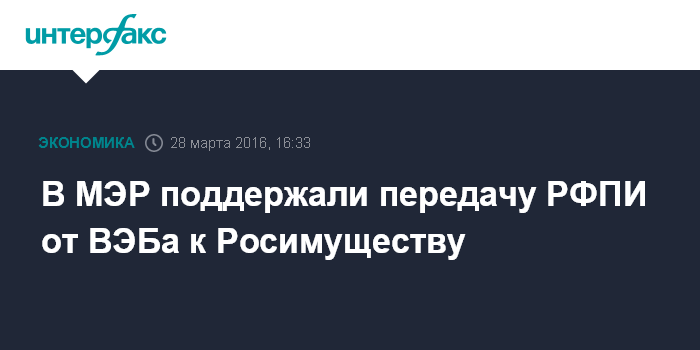 В МЭР поддержали передачу РФПИ от ВЭБа к Росимуществу