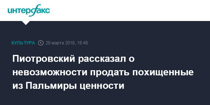 Пиотровский рассказал о невозможности продать похищенные из Пальмиры ценности