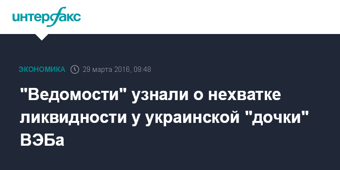 "Ведомости" узнали о нехватке ликвидности у украинской "дочки" ВЭБа