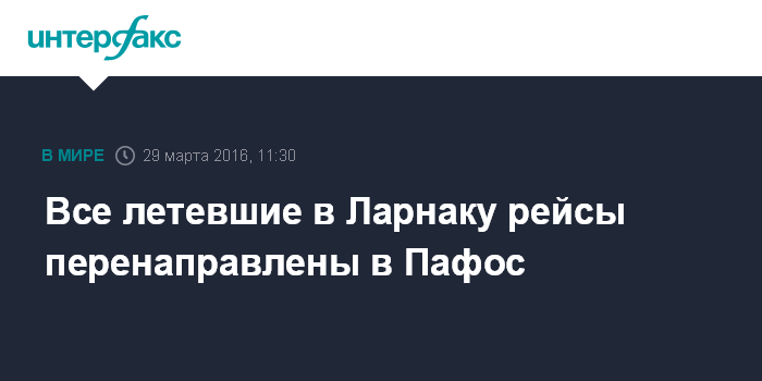 Москва. 29 марта. INTERFAX.RU - Власти Кипра приостановили работу аэропорта Ларнаки, все рейсы, направлявшиеся туда, перенаправлены в Пафос на юго-западе Кипра, сообщают западные СМИ.