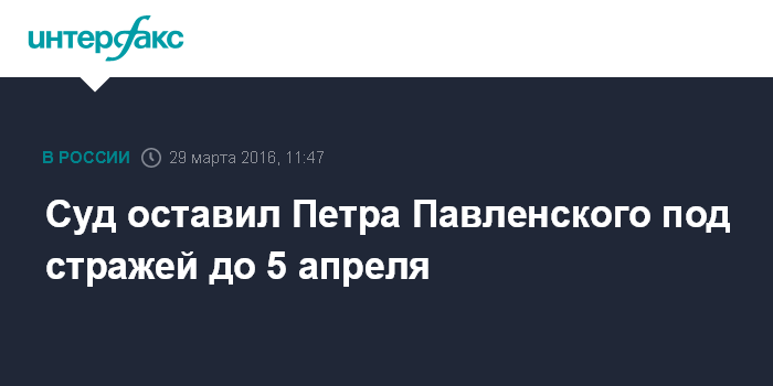 Ранее Таганский суд Москвы продлил арест Павленскому до 5 апреля.