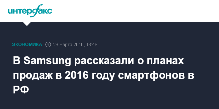 Москва. 29 марта. INTERFAX.RU - Компания Samsung в 2016 году планирует увеличить российские продажи смартфонов в долларовом эквиваленте в диапазоне до десяти процентов и до 20% в рублевом эквиваленте, сообщил "Интерфаксу" глава Samsung Mobile в России Аркадий Граф во вторник в Петербурге.