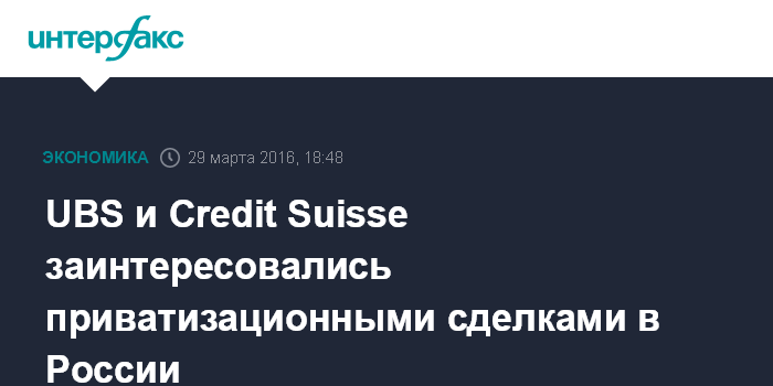 UBS и Credit Suisse заинтересовались приватизационными сделками в России