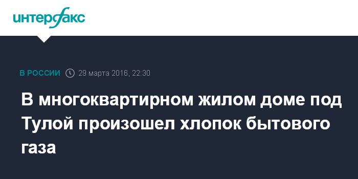 Москва. 29 марта. INTERFAX.RU - В Тульской области произошел хлопок бытового газа в многоэтажном доме. Погибших и пострадавших нет, сообщили "Интерфаксу" в Центральном региональном центре МЧС РФ.
