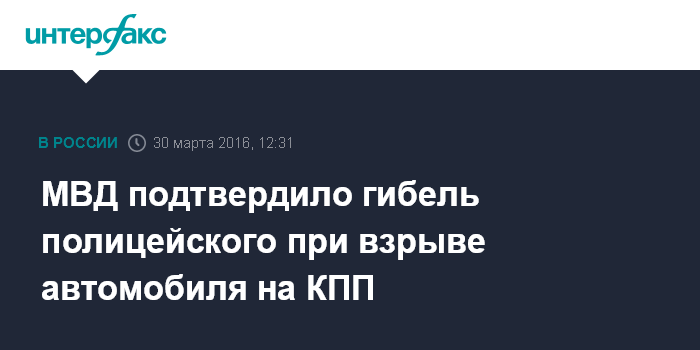 МВД подтвердило гибель полицейского при взрыве автомобиля на КПП