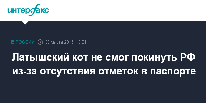 Латышский кот не смог покинуть РФ из-за отсутствия отметок в паспорте