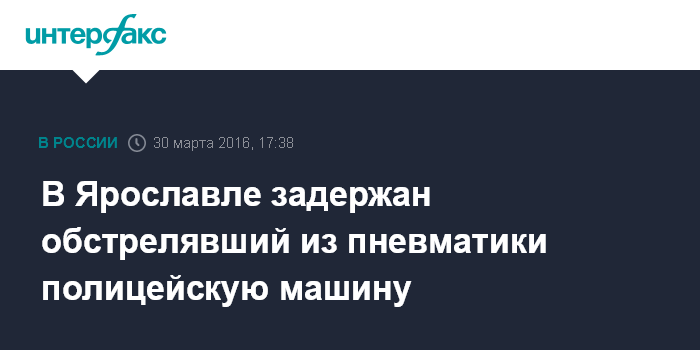 Москва. 30 марта. INTERFAX.RU - Сотрудники полиции задержали жителя Ярославля, повредившего стекло полицейской машины выстрелами из пневматического пистолета, сообщает пресс-служба УМВД по Ярославской области.