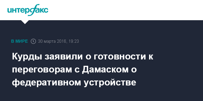 Москва. 30 марта. INTERFAX.RU - Заявления президента Сирии Башара Асада о том, что большинство курдов не хотят жить при федеративном устройстве, далеки от истины, заявил официальный представитель курдской партии "Демократический союз" в России Али Абдесалям "Интерфаксу" в среду.