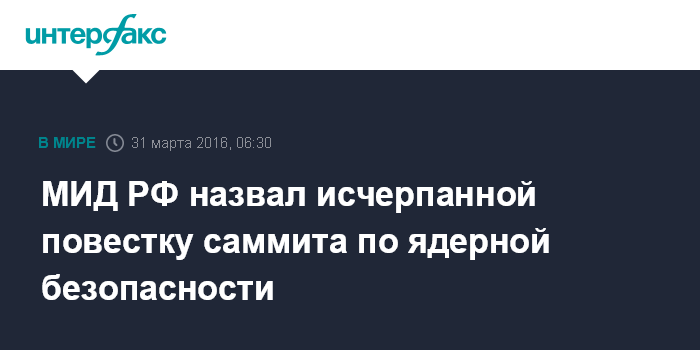 МИД РФ назвал исчерпанной повестку саммита по ядерной безопасности