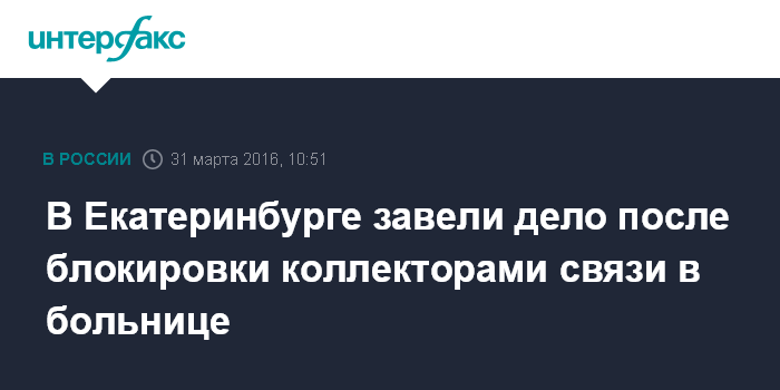 В Екатеринбурге завели дело после блокировки коллекторами связи в больнице
