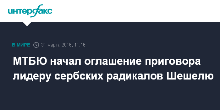 Москва. 31 марта. INTERFAX.RU - Международный трибунал по бывшей Югославии (МТБЮ) начал оглашение приговора по делу лидера Радикальной партии Сербии Воислава Шешеля.