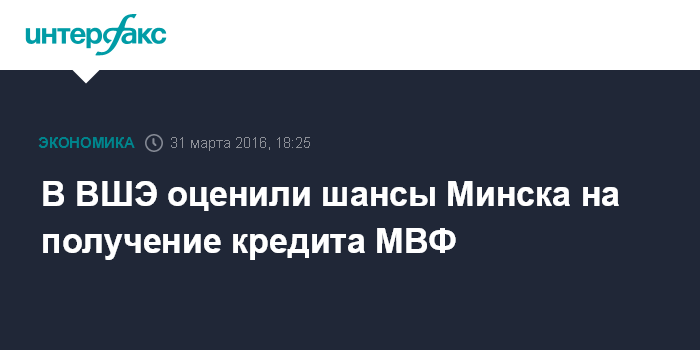 Москва. 31 марта. INTERFAX.RU - Шансы Белоруссии на получение кредита Международного валютного фонда (МВФ) невысоки, считают эксперты института "Центр развития" НИУ "Высшая школа экономики" (ВШЭ).