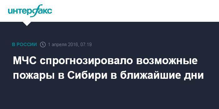 Москва. 1 апреля. INTERFAX.RU - Возникновение природных пожаров в ряде регионов Сибири прогнозируется в предстоящие выходные, сообщает Сибирский региональный центр МЧС России.