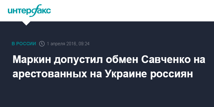 Москва. 1 апреля. INTERFAX.RU - Официальный представитель СКР Владимир Маркин считает возможным обменять украинку Надежду Савченко, осужденную на 22 года за убийство российских журналистов, на россиян, находящихся под арестом на территории Украины.