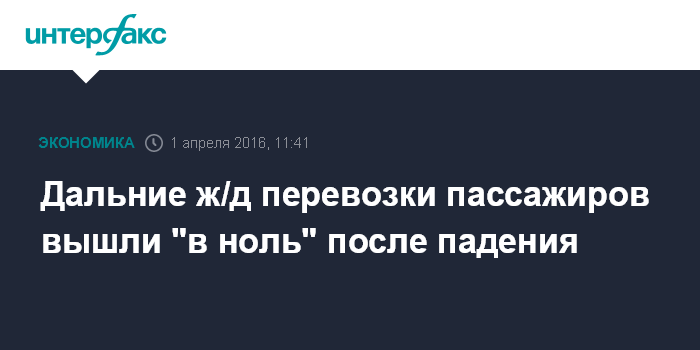 Москва. 1 апреля. INTERFAX.RU - Перевозки пассажиров в поездах дальнего следования в РФ начали выходить "в ноль" после многолетнего падения.