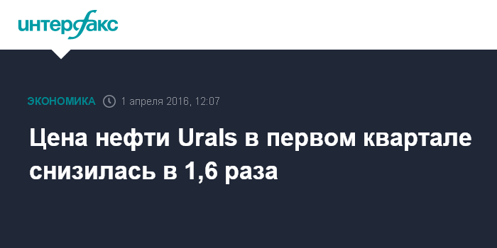Цена нефти Urals в первом квартале снизилась в 1,6 раза