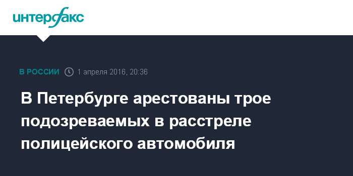 Москва. 1 апреля. INTERFAX.RU - Красногвардейский районный суд Санкт-Петербурга санкционировал арест трех подозреваемых по уголовному делу о расстреле полицейской машины на Муринской дороге Петербурга.