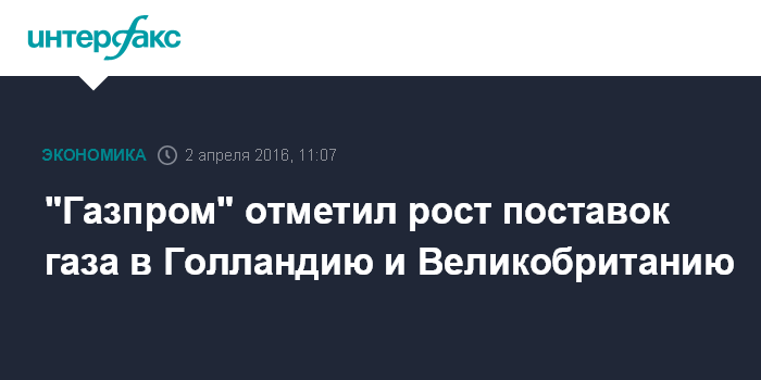 "Газпром" отметил рост поставок газа в Голландию и Великобританию