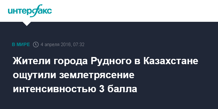 Москва. 4 апреля. INTERFAX.RU - В Костанайской области Казахстана в ночь на воскресенье произошло землетрясение магнитудой 3,5, сообщил в понедельник Центр сбора и обработки сейсмической информации института геофизических исследований республики.