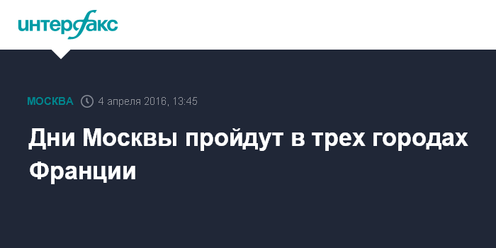Москва. 4 апреля. INTERFAX.RU - В июне 2016 года Дни Москвы во Франции пройдут в трех городах: Париже, Страсбурге и Ницце, следует из конкурсной документации, опубликованной на портале госзакупок.