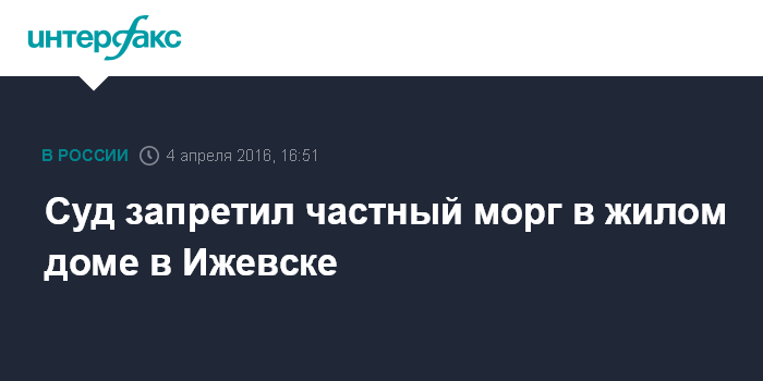 Такая деятельность в зоне застройки индивидуальными домами запрещена, отмечает прокуратура. Предприниматель был оштрафован, а надзорный орган обратился в суд с требованием о запрете работы морга. Это удалось сделать только после того, как дело дошло до Верховного суда Удмуртии.