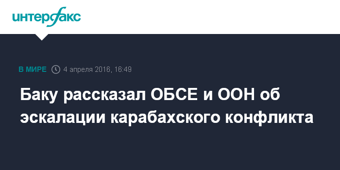 Баку рассказал ОБСЕ и ООН об эскалации карабахского конфликта