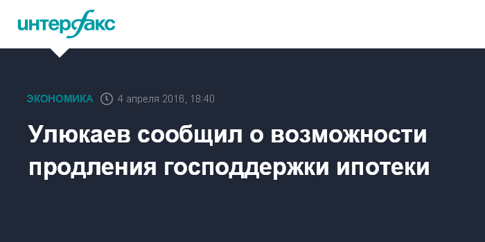 "Механизм поддержки ипотеки, я считаю, что может быть продлен за пределы 2016, текущего года", - сказал Улюкаев, выступая на генсовете "Деловой России" в понедельник.