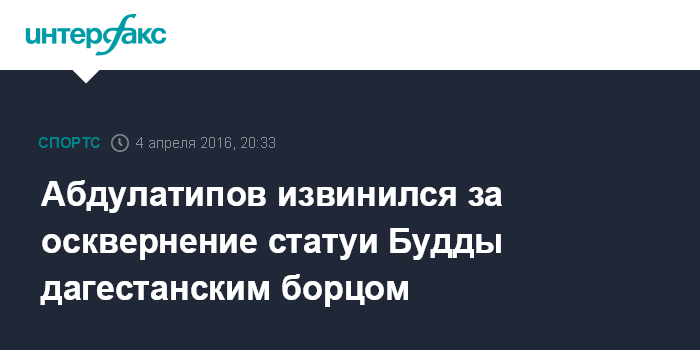 Москва. 4 апреля. INTERFAX.RU - Глава Дагестана Рамазан Абдулатипов принес извинения за осквернение статуи Будды в Элисте, в котором подозревается дагестанский спортсмен, сообщается в понедельник на официальном сайте главы Калмыкии Алексея Орлова.