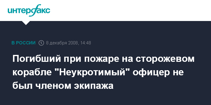 Москва. 8 декабря. INTERFAX.RU - Офицер Балтийского флота, погибший во время пожара на сторожевом корабле "Hеукротимый", не входил в экипаж корабля, заявили "Интерфаксу" в понедельник в штабе флота.