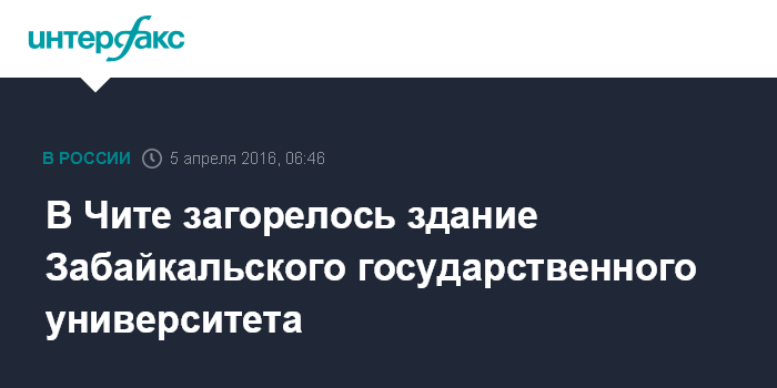 Москва. 5 апреля. INTERFAX.RU - В Чите эвакуируют людей из горящего здания факультета филологии и массовых коммуникаций Забайкальского государственного университета, сообщили "Интерфаксу" в пресс-службе краевого ГУ МЧС