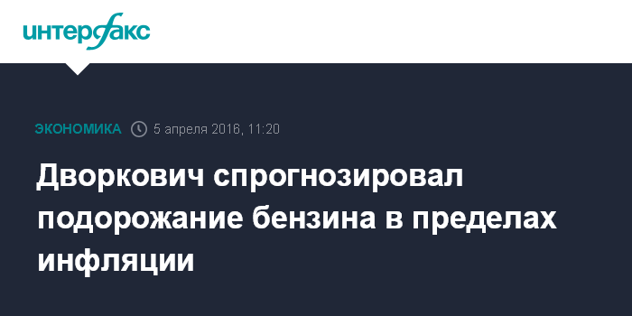 Москва. 5 апреля. INTERFAX.RU - Вице-премьер Аркадий Дворкович надеется, что рост цен на бензин в РФ в 2016 годуостанется в пределах инфляции.