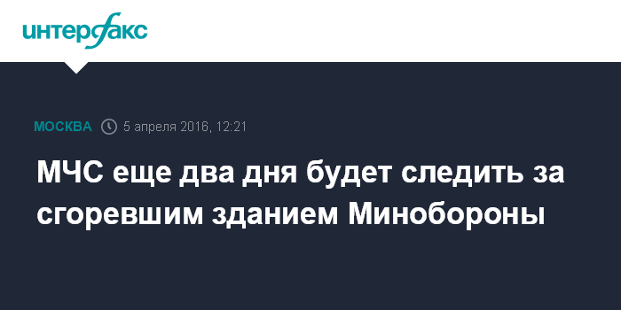Москва. 5 апреля. INTERFAX.RU - Пожарные в течение еще двух суток будут регулярно проводить проверки на месте пожара в здании Минобороны в центре Москвы, сообщили "Интерфаксу" в пресс-службе столичного главка МЧС.