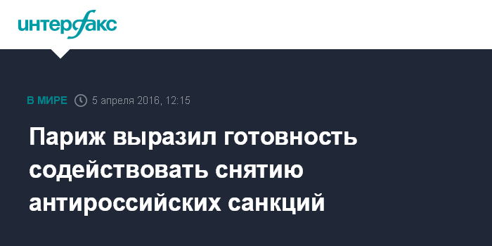 Париж выразил готовность содействовать снятию антироссийских санкций