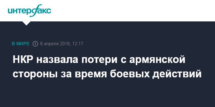 Москва. 6 апреля. INTERFAX.RU - Порядка 50 военнослужащих с армянской стороны убито, более 100 ранено в результате боевых действий на линии соприкосновения в Нагорном Карабахе, заявил советник первого класса постпредства непризнанной Нагорно-Карабахской республики в РФ Арсен Мелик-Шахназаров.
