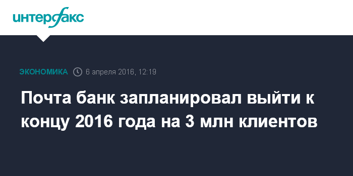 Почта банк запланировал выйти к концу 2016 года на 3 млн клиентов