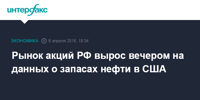 Москва. 6 апреля. INTERFAX.RU - Российский рынок акций РФ, растерявший к середине дня весь утренний рост, вечером в среду получил новую порцию позитива после публикации еженедельной статистики по запасам нефти в США, вызвавшей рост нефтяных котировок.